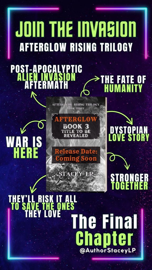 Looking for bonus content? Sign up for Stacey LP’s newsletter to gain access to exclusive content, including bonus chapters from Afterglow Rising From the Ashes!